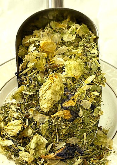 Ingredients: Skullcap, Passionflower, Blue Butterfly Pea Flower, Spearmint, Lemon, Bamboo, Hops, Lavender