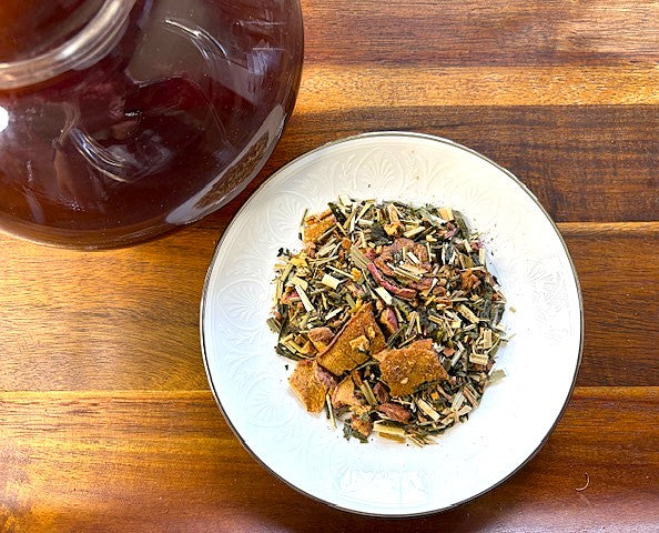 Ingredients: Dried Local Pears, Dried Local Apples, Organic Sencha Green Tea, Cinnamon Chips, Nutmeg, Lemon Grass, Allspice, Vanilla Powder
