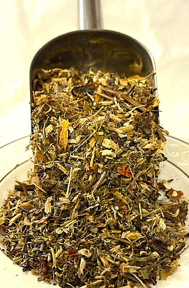 Ingredients: Organic Echinacea root, Marshmallow root, Organic Licorice root, Dried Lemon, Organic Plantain, Organic Fennel Seed, Rose hip, Ginger Root, Organic Peppermint, Organic Lemon Balm, Lemon Grass, Lemon Thyme, Elderberry Flowers, Lavender, Lemon Peel