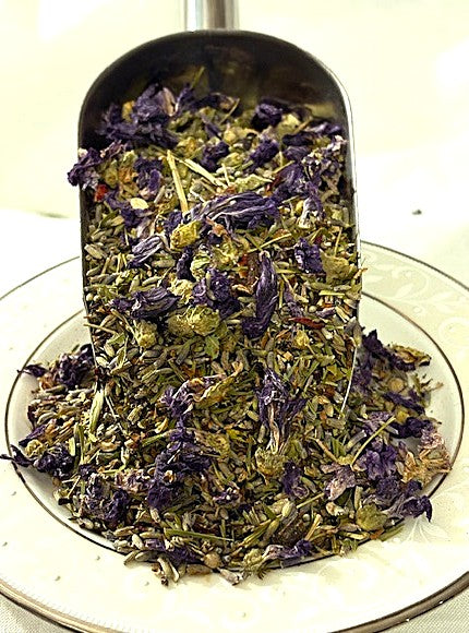 Taste Note: The first sip is a delicate balance of soothing lavender and linden blowers, with honeybush offering a light, honeyed sweetness. Hibiscus adds a gentle tartness, while the luxurious vanilla notes provide a creamy richness. The vibrant blue of butterfly pea flower adds a touch of earthiness, and bamboo rounds out the blend with a subtle, smooth undertone. A perfect tea to relax and unwind at the end of a long day.